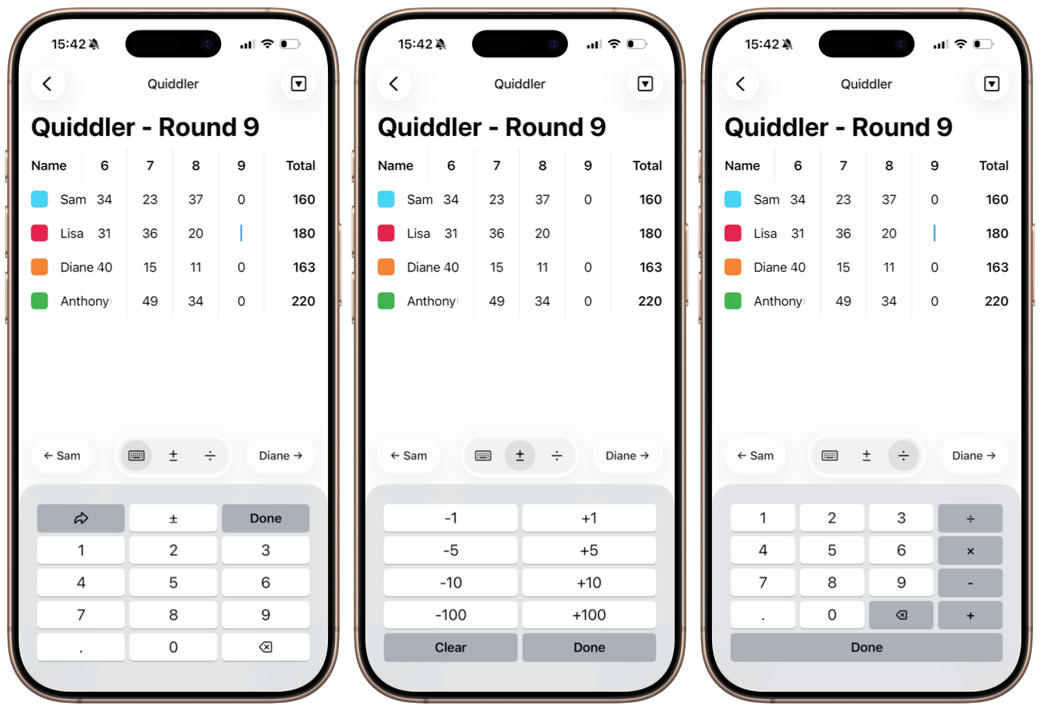 I'm looking forward to the stepper. There's a few games I play often like Quiddler that after you've added everyone elses scores there's a couple 10 point bonuses that get handed out. Previously the flow was to just backspace a couple times, do the math, and retype the score. But now it's just switch keyboard and hit +10.